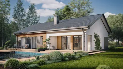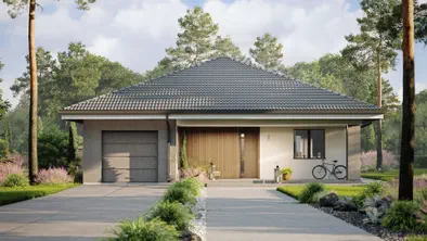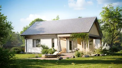 - Z7273 m²Ekonomiczny w realizacji dom parterowy z dwoma pokojami i duża strefą dzienną