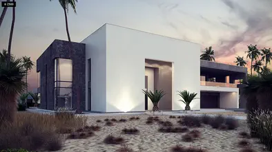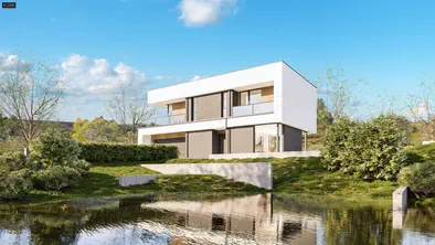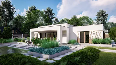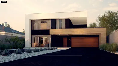 Zx214 +139 + 42 m²Powiększony wariant domu z płaskim dachem i garażem dwustanowiskowym.