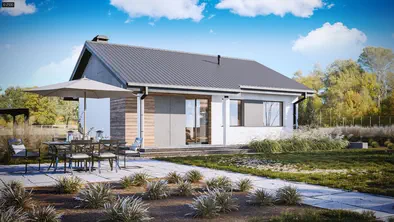 Z7273 m²Ekonomiczny w realizacji dom parterowy z dwoma pokojami i duża strefą dzienną