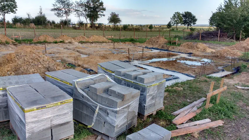 Pierwsza partia bloczków fundamentowych już na miejscu.