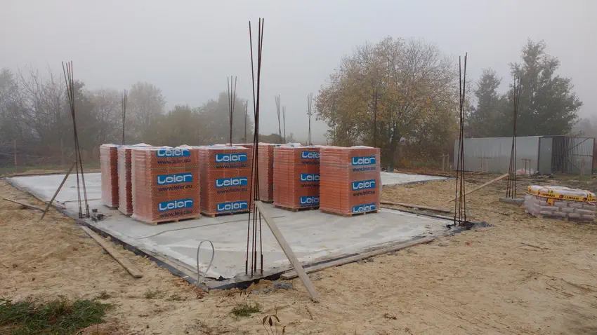 Pod ściany dajemy papę ICOPAL FUNDAMENT SZYBKI PROFIL SBS. Dodatkowo, wykonawca ma w zwyczaju dać folię izolacyjną między pierwszą a drugą warstwę pustaków.