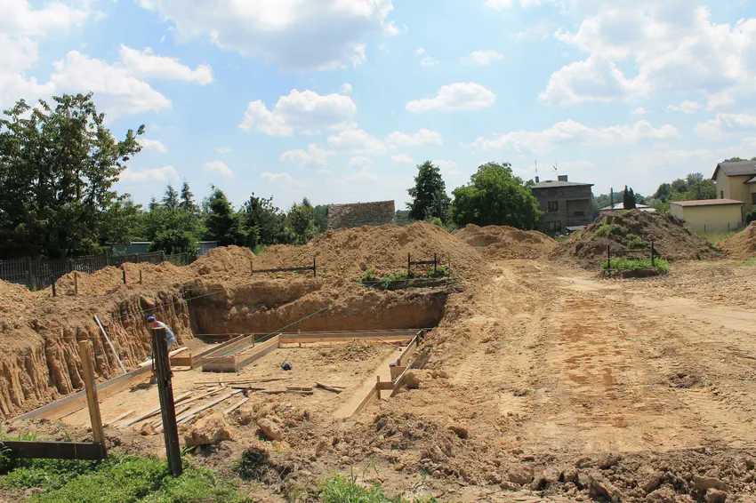 Działka i fundamenty dzień budowy Budujemy w wersji lustrzanej z częściowym podpiwniczeniem pod garażem+pom. gosp.+pokojem. 17 sierpnia 2013, 20:3630 dni temu