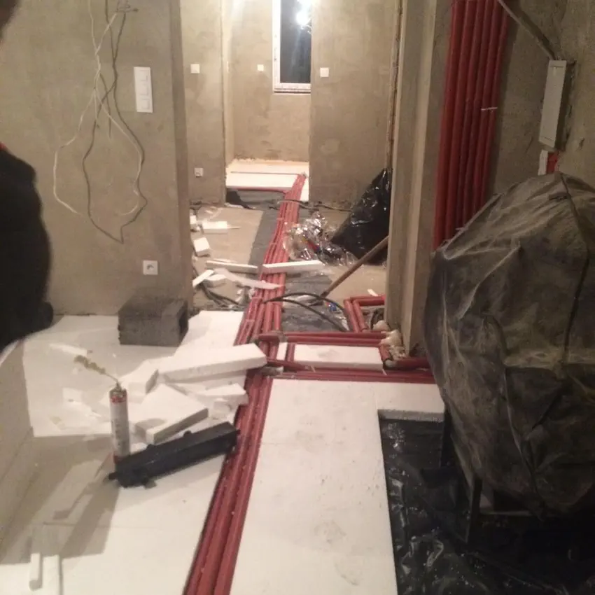 Rozpoczynamy rozkładanie foli i styropianu pod wylewkę na parterze.