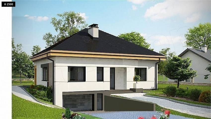 Projekt po zmianach podpiwniczenie kuchni i salonu . Przez co uzyskanie garażu i kotłowni .