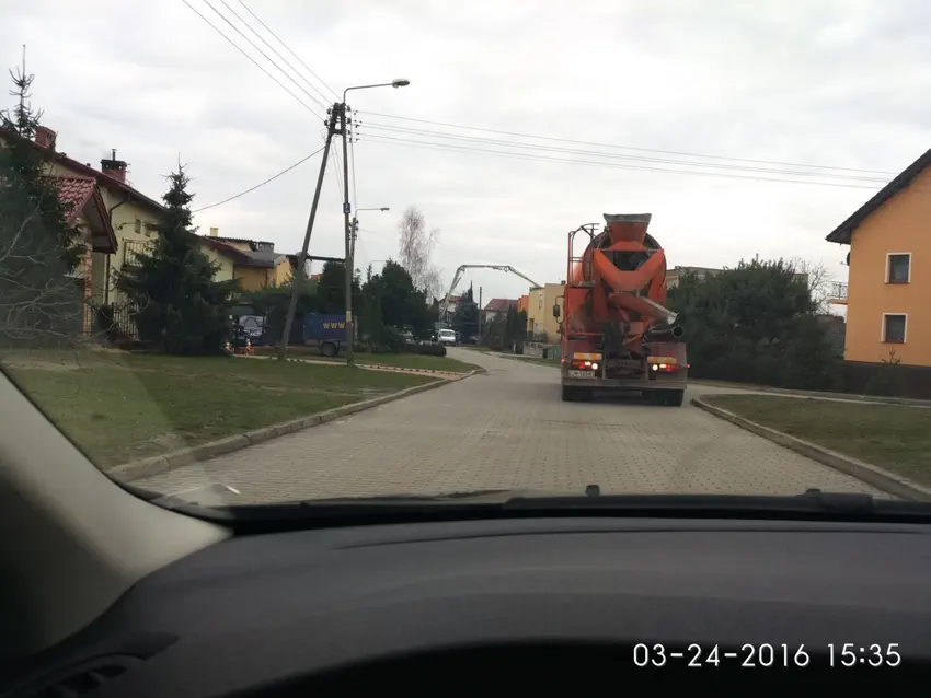 24.03.16 - nieoczekiwanie dzień wcześniej przyjechał beton. 4 transporty - w sumie 29,5m3. Grubość płyty 34cm. Po 1,5h pracy pompy etap płyty fundamentowej został zakończony, teraz tydzień schnięcia.