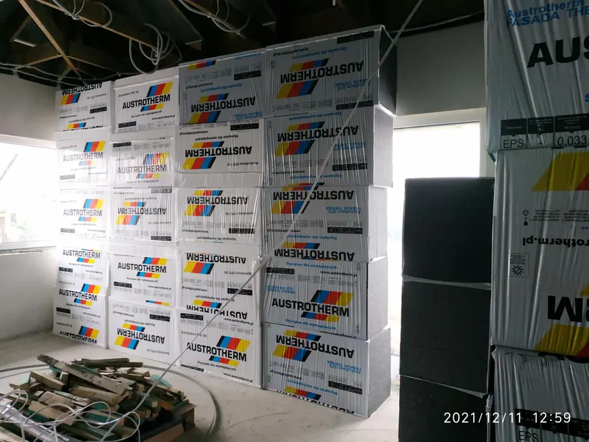 W domu zrobiło się jakby cieplej... hihi, dojechał wreszcie styropian. Wniesienie 154 paczek z drogi głównej do domu, odległość około 150 m, zajęło 3 osobom około 3 godzin. Niby lekki a jednak dał się nam we znaki...