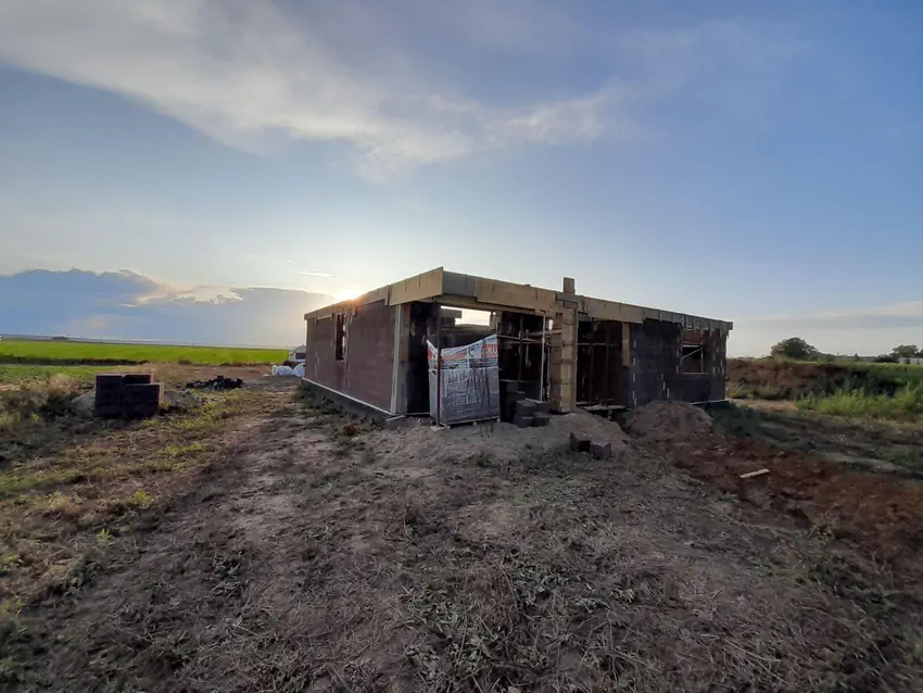Ściany zewnętrzne stoją, wykop pod WLZ zrobiony. W przyszłym tygodniu wieniec