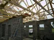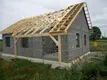 Więźba dachowa, czyli gotowiec. Chciałem z początku robić więźbę samodzielnie bo po przeliczeniu kosztów wychodziło 20% taniej, ale wciągać belki na górę, w ogóle magazynować drewno na działce, dokupywać okucia itp i robota na kilka dni w kilku ludzi.