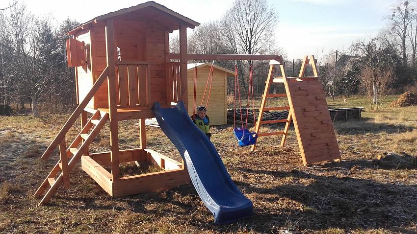 Zakup działki. No i placu zabaw dla dzieci. Oliwier (5 lat) i Milan (1 rok) przeszczęśliwi. Tutaj powstanie nasz wymarzony dom...