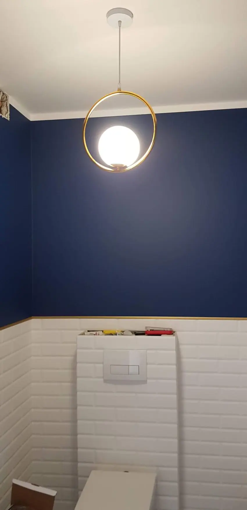 lampa w toalecie wisi i pięknie święci