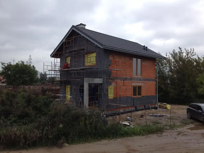 Rozpoczęły się prace przy ociepleniu - przez pogodę (ciągle leje) idzie jak krew z nosa... Więcej zadziało się w środku, bo jest już kotłownia i częściowo wykończenie.