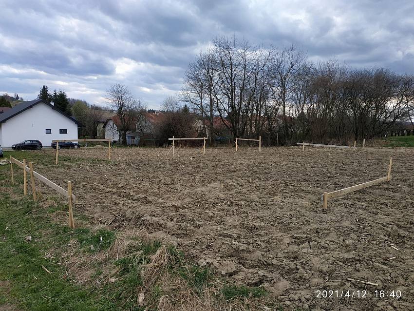 Po otrzymaniu pozwolenia na budowę 01.03 2021 nasza cierpliwość została poddana pierwszej próbie. Na tyczenie domu, z uwagi na tragiczną pogodę, musieliśmy czekać ponad miesiąc.