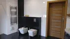 Łazienka przeniesiona w miejsce pokoju w wykuszu. Dzięki temu wygospodarowana została duża kabina walk-in oraz dodatkowy WC.