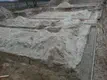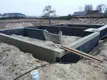 Po zdjęciu humusu okazało się, że wykop jest dość głęboki, dodatkowo względem drogi i reszty działki miejsce położenia domu jest niżej stąd fundament wyliczono na 11 warstw. Jak na pierwszy rzut oka widać, jedna ściana fundamentowa została usunięta z projektu, ze względu na zmianę stropu z żelbetowego na płyty żerańskie. Aby nie pchać się w koszty, zamiast styroduru lub styropianu wodoodpornego, zewnętrzna warstwa zwykłego styropianu zostanie pokryta siatką, klejem i dodatkowo dysperbitem, dopiero na taką ścianę przyjdzie folia kubełkowa. Dookoła domu został wykonany odpływ wody deszczowej z dachu (tak aby nie było widać rynien) oraz zostały wyprowadzone zaślepione rury w ziemi, aby można było na terenie obok domu i tarasie wykonać kratki odpływowe. Zapomnieliśmy dodać, że budujemy trybem gospodarczym na tyle ile to możliwe, póki co tylko wykonanie wykopu oraz ułożenie bloczków było po stronie "ekipy budowlanej". Po zakończeniu stanu zero, suma kosztów (bez projektu i adaptacji), to 31441 PLN. Do budowy zużyliśmy 2244 sztuk bloczków betonowych (12x24x38), 140 litrów dysperbitu, 92 m2 styropianu z siatką, 136 worków cementu, 200 kg stali, 42m3 betonu (22m3-b20, 20m3 b15). Do w/w kosztów wlicza się oczywiście wypożyczenie ubijaka, drewno na szalunki, żwir, potrzebne narzędzia. Zaoszczędziliśmy posiadaniem własnych kształtek/rur PVC do kanalizy zerowej i napowietrzenia kominka, przemyślanymi zakupami i wkładem pracy.
