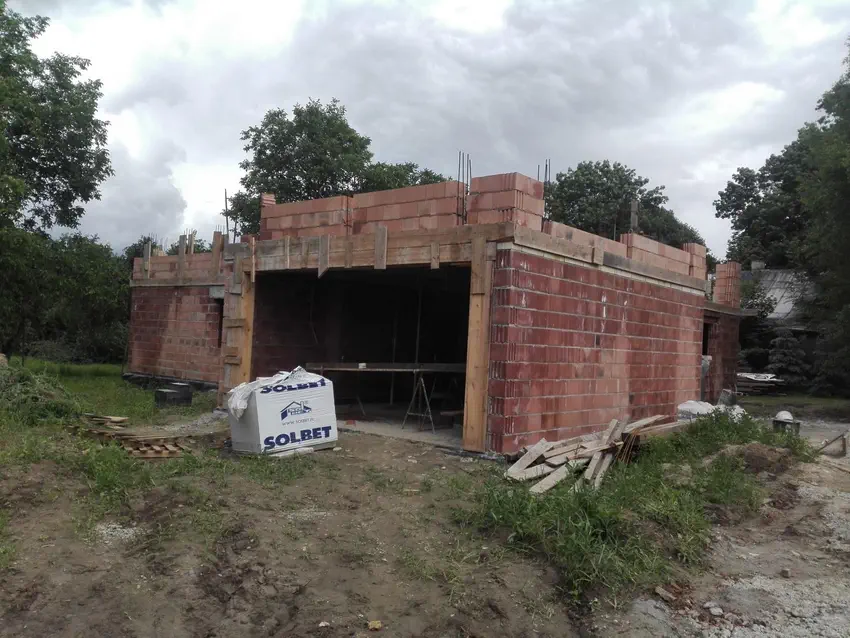 Na przełomie czerwca i lipca pojawiły się pierwsze problemy inwestorskie. Poprzednią ekipę ze względu na nasze trudne relacje z właścicielem firmy i wciąż rosnące koszty dodatkowe musieliśmy pożegnać. Na szybko potrzebowaliśmy budowlańców, aby wymurować ściany attyki. Ktokolwiek był w podobnej sytuacji wie, jak ciężko znaleźć jest kogoś na szybko (terminy zwykle na za 2 lata...) i nie za miliony monet. Na szczęście dla nas znajomy budowlaniec (spec od wszystkiego) miał akurat wolne przebiegi i wraz z synem (i naszą pomocą) udało się wymurować ściany, zaszalować i zalać słupki i wieniec attyki.